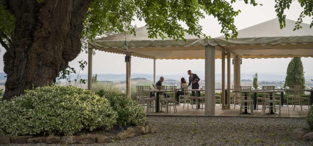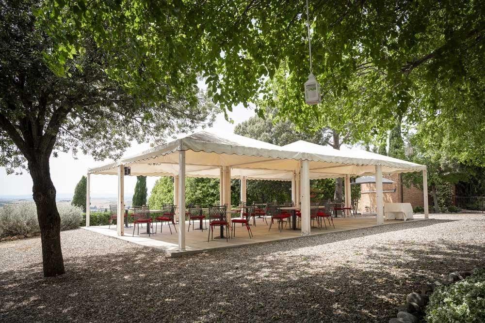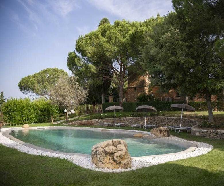 Zámek se nachází ve vesničce Leonina s výhledy do toskánské krajiny. |