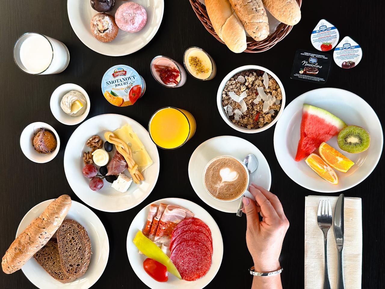 Polopenze. Snídaně formou bufetových stolů se širokým sortimentem snídaňových jídel. Večeře formou bufetu, v případě menší obsazenosti hotelu jsou večeře servírované. |