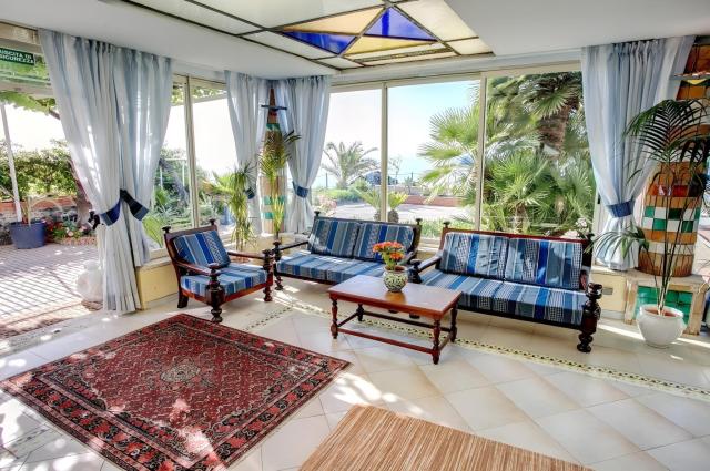 Vstupní hala s recepcí, lobby, výtah, restaurace, bar, TV místnost. Venku zahrada a terasa s lehátky a slunečníky zdarma. |