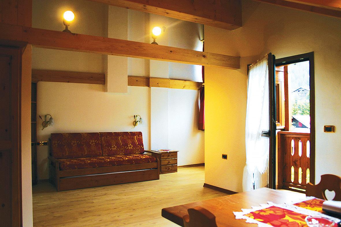 #bilo 4: 45 m² - 1 ložnice s manželskou postelí, obývací pokoj s kuchyňským koutem a rozkládacím gaučem pro 1 osobu a samostatným lůžkem pro 1 osobu, předsíň, sociální zařízení